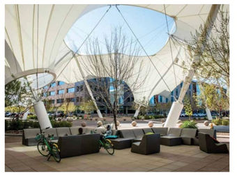 Integrate shrubbery & grass-covered surfaces in high-heat zones.